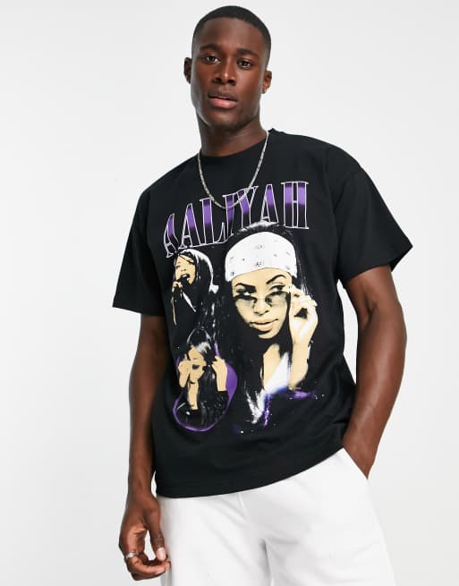 Pull&Bear x Aaliyah – Bedrucktes T-Shirt in Schwarz