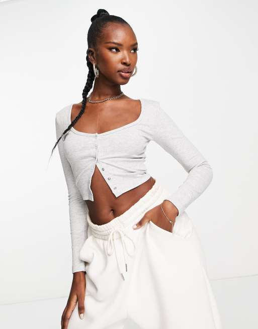 PUMA – Classics – Geripptes, langärmliges Oberteil in Grau