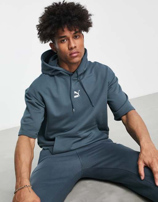 Puma – Classics – Kurzärmliger Kapuzenpullover in Marineblau