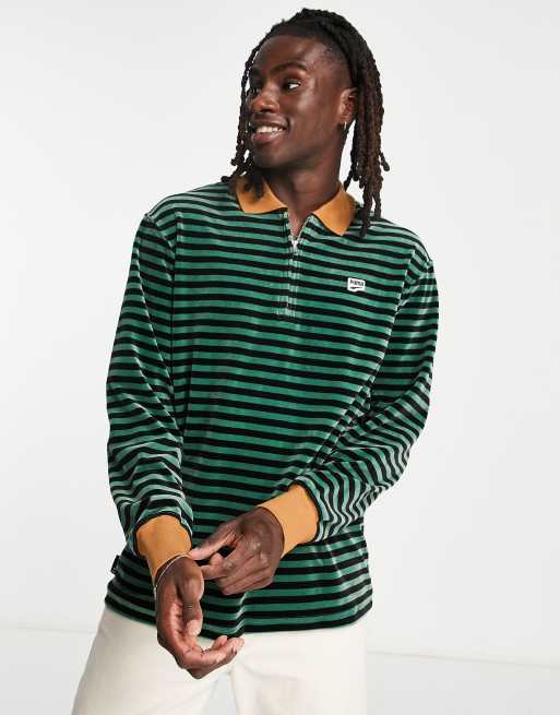 Puma – Downtown – Velourshemd in Grün gestreift mit Polokragen