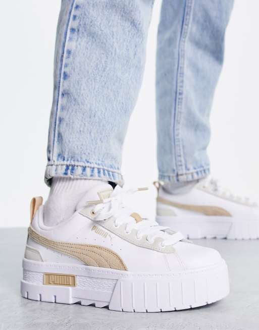 PUMA – Mayze – Sneaker in Weiß und Rosa mit dicker Sohle