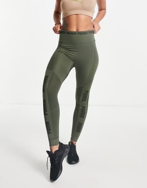 PUMA – Training Evoknit – Nahtlose Leggings in Dunkelgrün