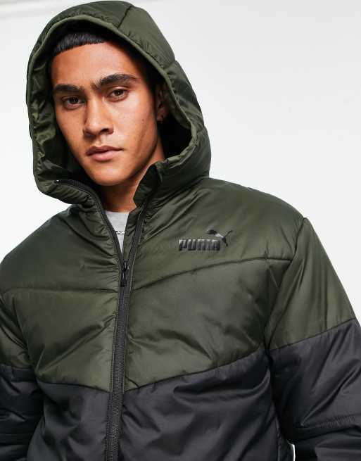 PUMA – Wattierte Jacke in Schwarz und Khaki