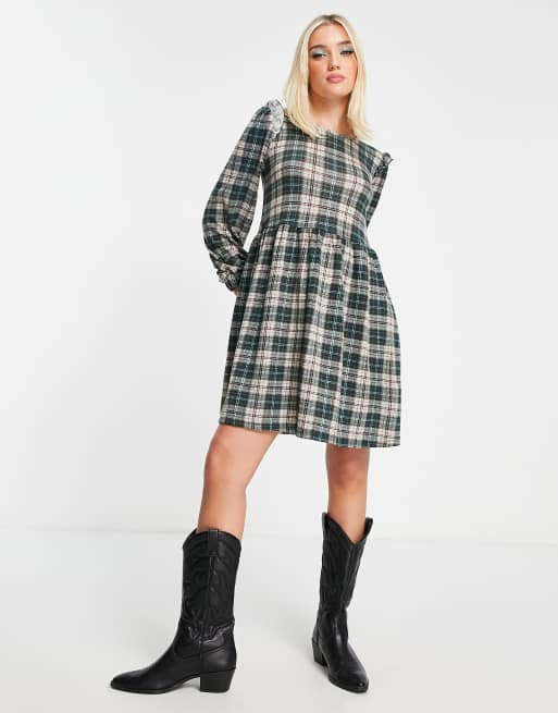 QED London – Grün kariertes, kurzes Hängerkleid