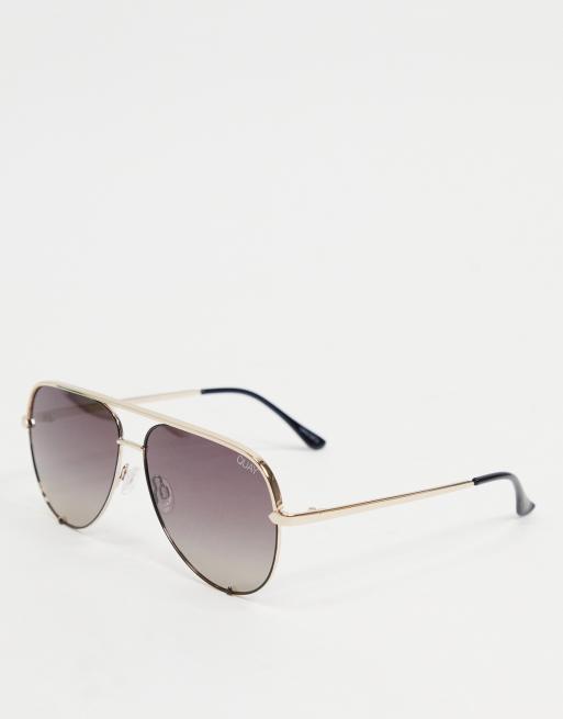 Quay – High Key – Pilotensonnenbrille für Damen in Schwarz und Gold mit polarisierten Gläsern