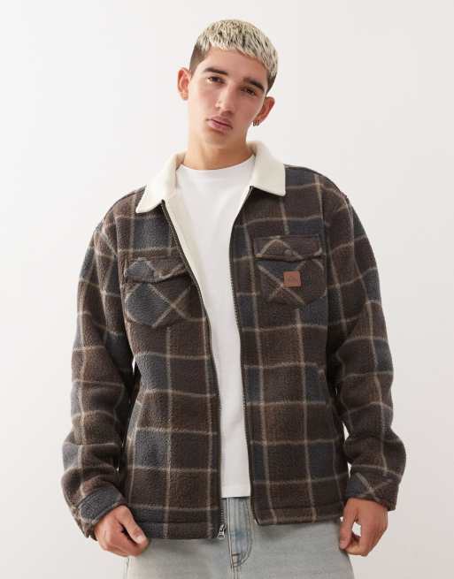 Quiksilver – Jacke aus Sherpafleece in kariertem Schokobraun