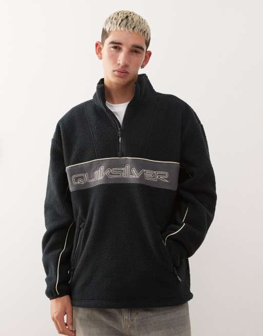 Quiksilver – Omni – Oberteil aus Sherpa-Fleece in Schwarz mit kurzem Reißverschluss