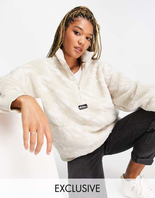 Quiksilver – Pullover aus strukturiertem Teddy-Fleece in Beige mit 1/4-Reißverschluss, exklusiv bei ASOS