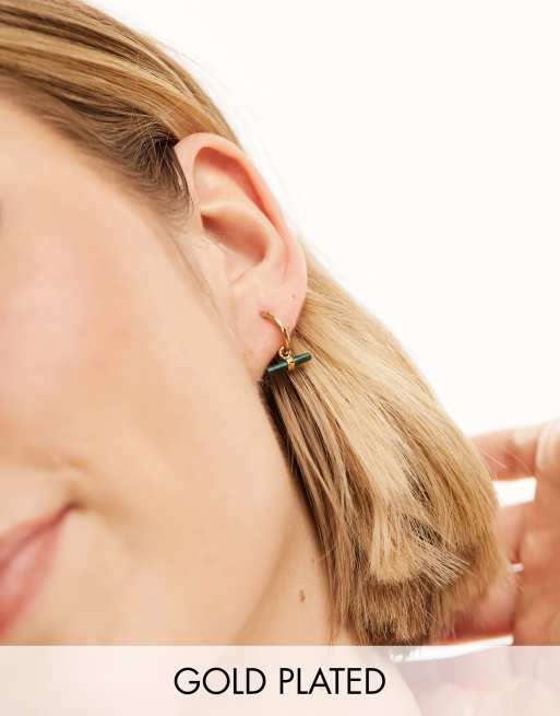 Rachel Jackson – 22 Karat vergoldete Ohrringe mit T-Steg in Malachitgrün, inkl. Geschenkschachtel