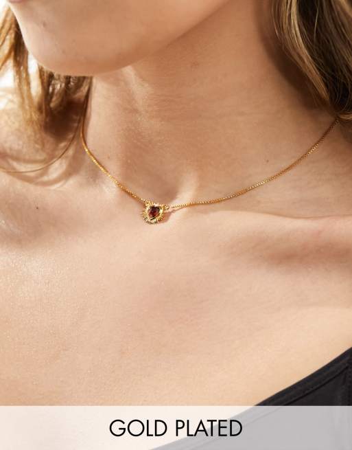 Rachel Jackson – Electric Love – 22-karätig vergoldete Ohrstecker mit herzförmigem Kunst-Granatstein, inkl. Geschenkschachtel