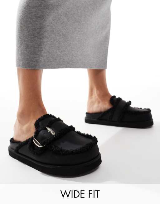 RAID Wide Fit – Kylie – Mules in Schwarz mit Teddyfell, weite Passform