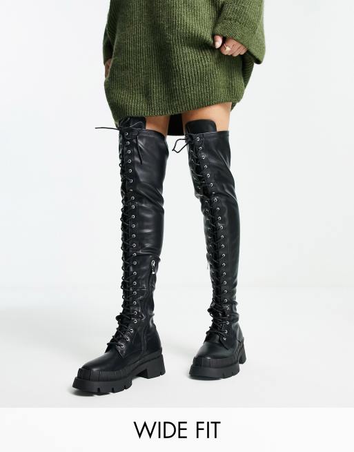RAID Wide Fit – Oakford – Hautenge Overknee-Schnürstiefel in Schwarz, weite Passform