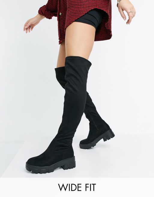 RAID Wide Fit – Pierra – Overknee-Stiefel mit klobiger Sohle in Schwarz
