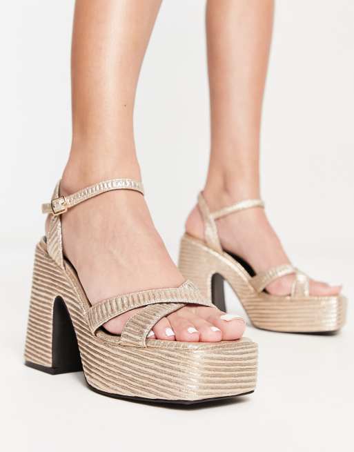 RAID – Keiran – Sandaletten in strukturiertem Metallic-Gold mit Plateausohle und weiter Passform, exklusiv bei ASOS