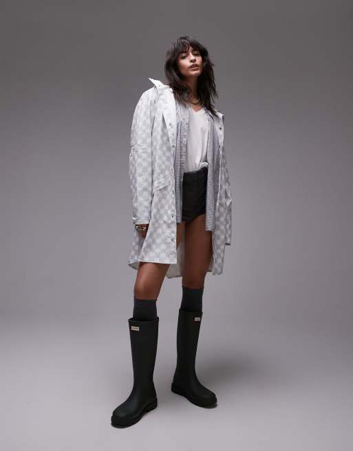Rains – 12020 – Wasserdichte, lange Jacke mit hellem Schachbrettmuster