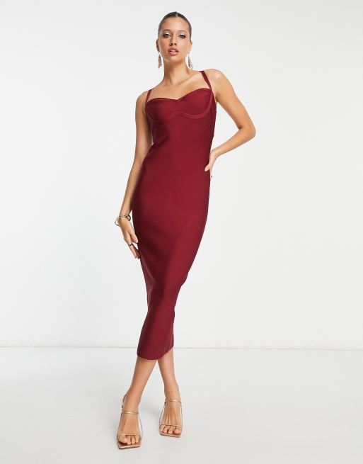 Rare London – Bodycon-Midikleid in Weinrot mit Bandagen-Optik