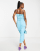 Rare London – Midikleid in Blau mit Raffung und Spaghettiträgern