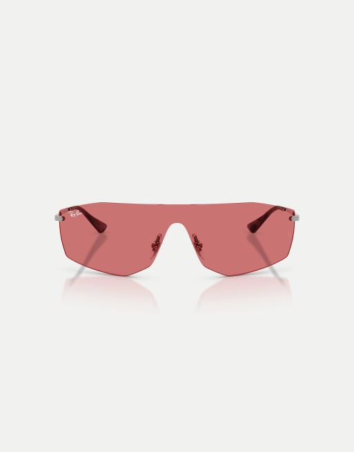 Ray-Ban – Alix – Ungewöhnlich geformte Sonnenbrille in Stahlgrau mit roten Gläsern