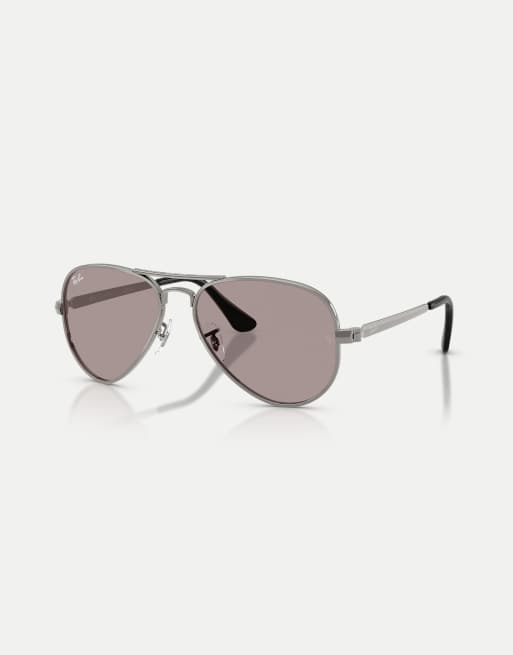Ray-Ban – Aviator – Große Pilotensonnenbrille in Stahlgrau mit lila Gläsern