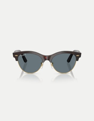 Ray-Ban – Clubmaster – Polarisierte Sonnenbrille in rotem Havana auf Gold mit blauen Gläsern