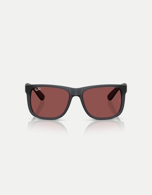 Ray-Ban – Justin – Klassische, eckige Sonnenbrille in Opalgrau mit violetten Gläsern