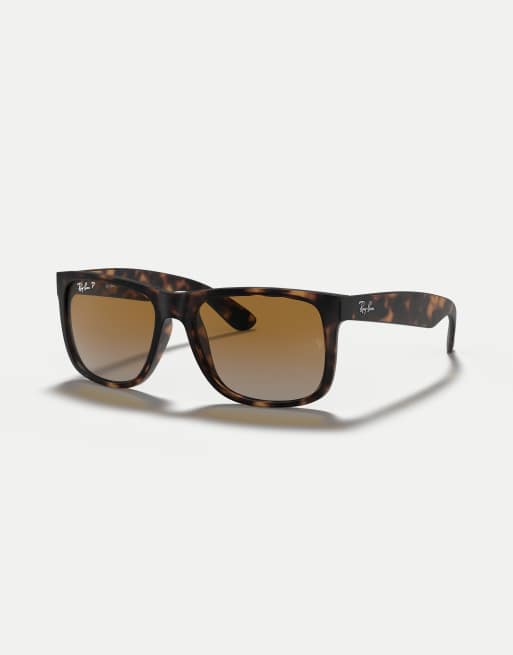 Ray-Ban – Justin – Klassische, polarisierte, eckige Sonnenbrille in Havana mit grünen Gläsern