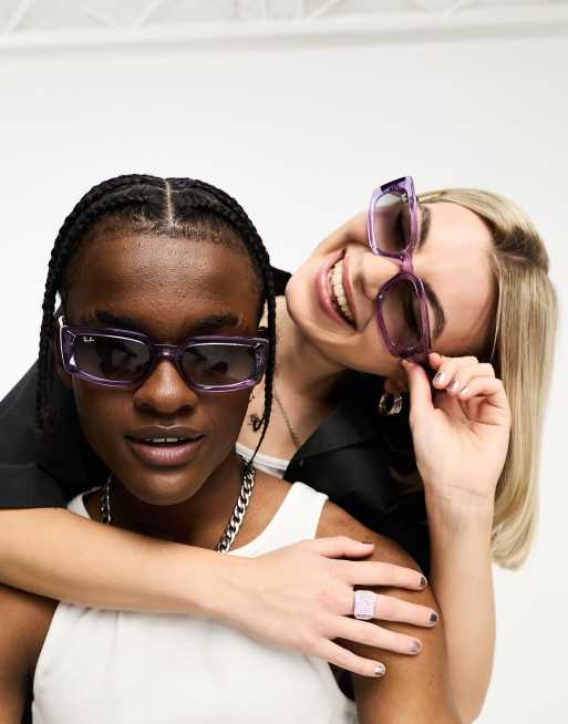 Ray-Ban – Kiliane – Rechteckige Sonnenbrille in transparentem Violett
