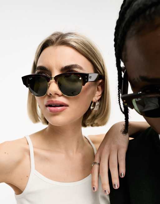 Ray-Ban – Mega Club Master – Runde Sonnenbrille mit Schildpattoptik und Gläsern in Grün