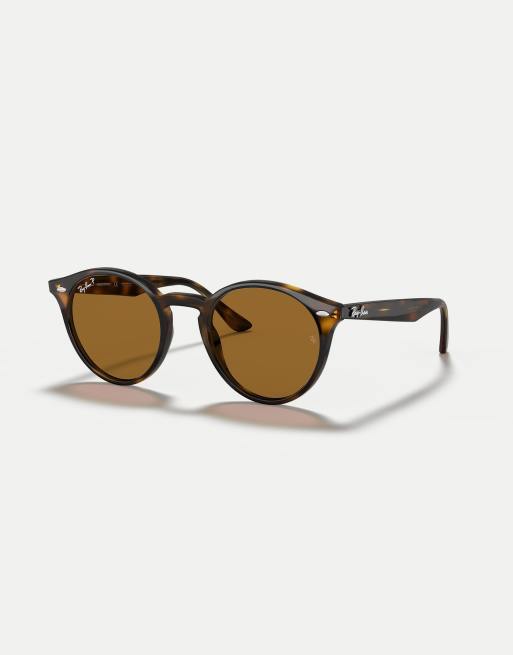 Ray-Ban – RB2180 – Runde Sonnenbrille in Schildpatt-Optik in hellerem Dunkelbraun mit braunen, polarisierten Gläsern