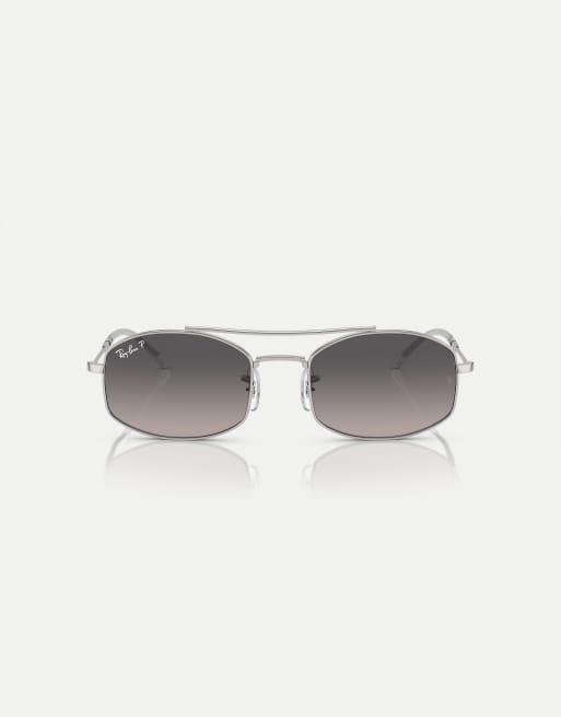 Ray-Ban – Rb3719 – Ovale polarisierte Sonnenbrille in Silber-Optik mit grauen Gläsern