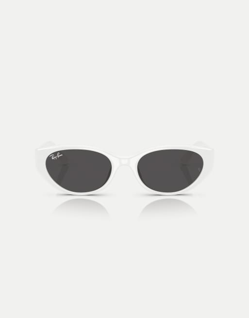 Ray-Ban – Rb4457 – Rechteckige Sonnenbrille in Weiß mit grauen Gläsern