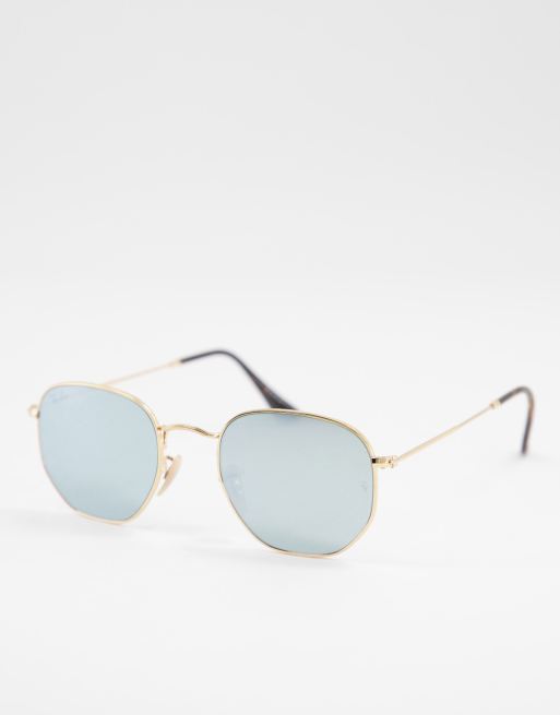 Ray-Ban – Sechseckige Sonnenbrille in Gold mit verspiegelten Gläsern