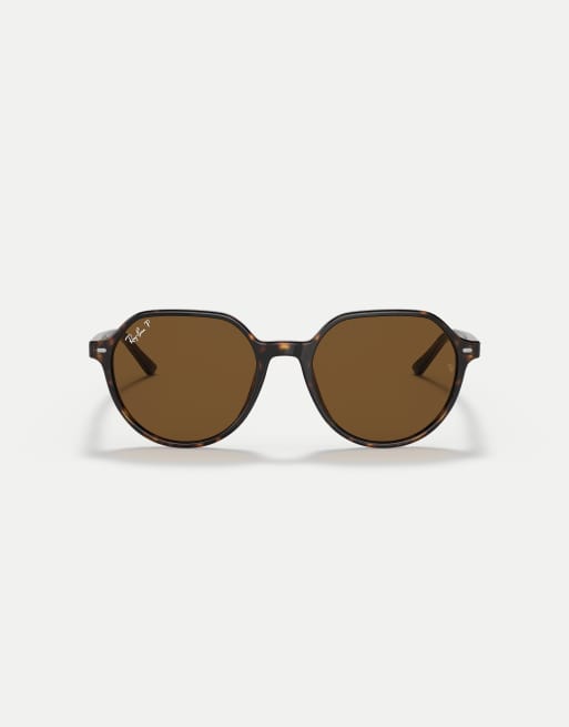 Ray-Ban – Thalia – Eckige, polarisierte Sonnenbrille in Havana mit braunen Gläsern