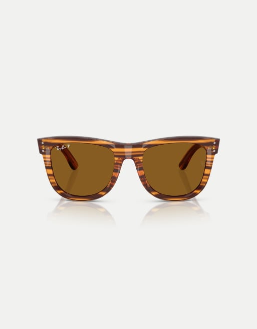 Ray-Ban – Wayfarer – Eckige, polarisierte Sonnenbrille in gestreiftem Havana mit braunen Gläsern