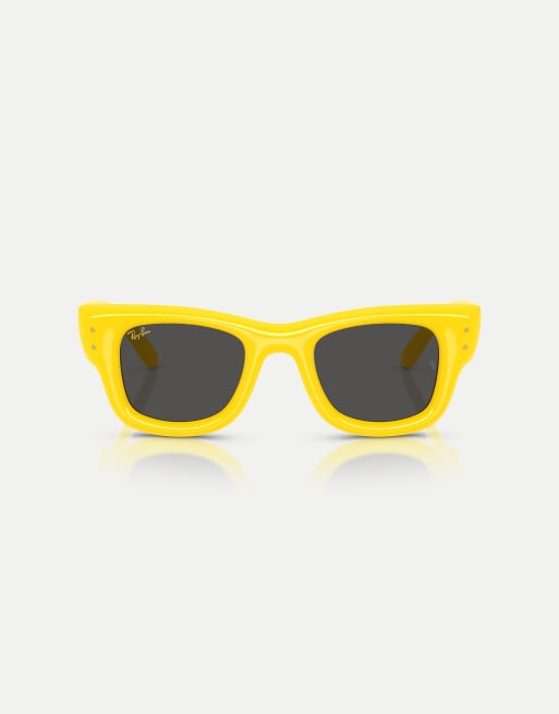 Ray-Ban – Wayfarer – Gewölbte, eckige Sonnenbrille in Gelb mit schwarzen Gläsern