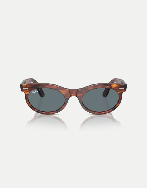 Ray-Ban – Wayfarer – Ovale, polarisierte Sonnenbrille in gestreiftem Havana mit blauen Gläsern