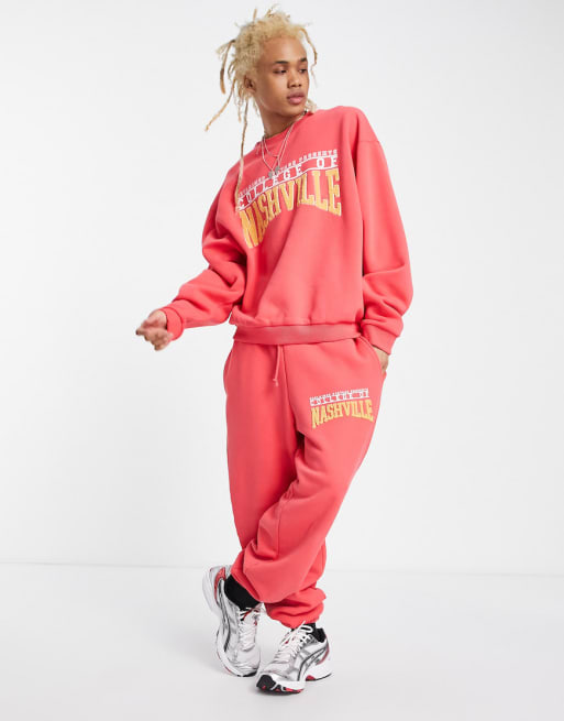 Reclaimed Vintage Inspired – Rotes Kombiteil mit Nashville-Print