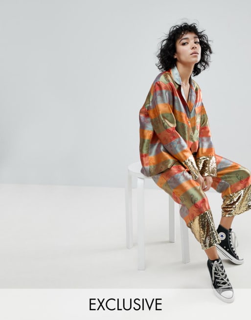Reclaimed Vintage Inspired – Set mit Hemd und Hose mit Regenbogen-Brokatdesign