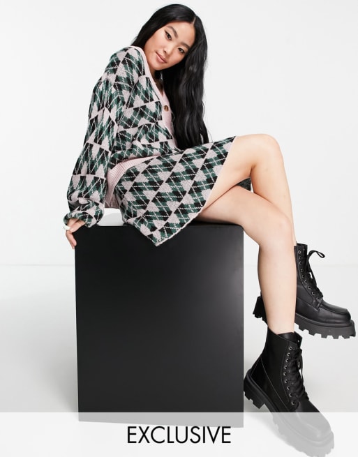 Reclaimed Vintage Inspired – Set mit mehrfarbigem Rautenmuster