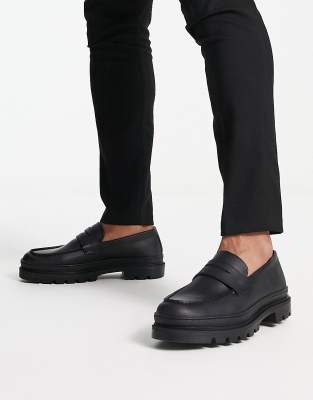 Red Tape – Penny-Loafer aus mattem Leder in Schwarz mit dicker Sohle