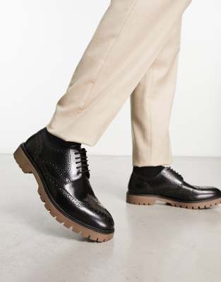 Red Tape – Schnürschuhe aus schwarzem Leder mit breiter Gummisohle