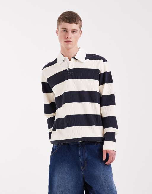 Redefined Rebel – Ocean – Polohemd aus Sweatshirtstoff in Marineblau gestreift