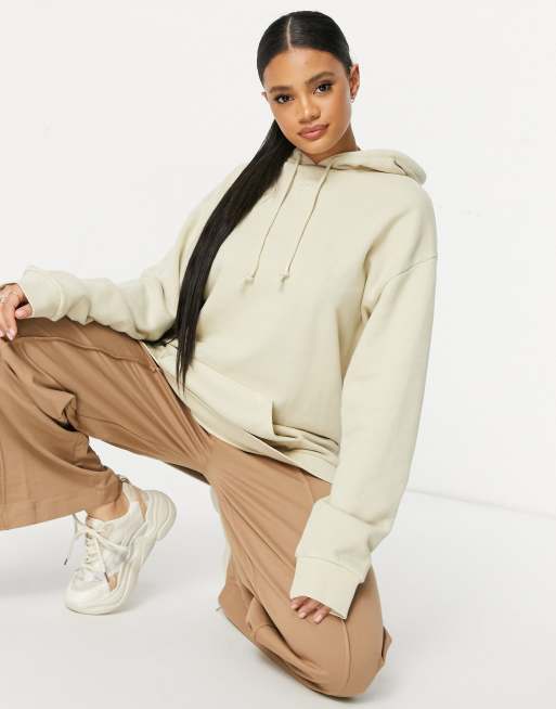 Reebok – Kapuzenpullover in Beige mit mittigem Logo - BEIGE