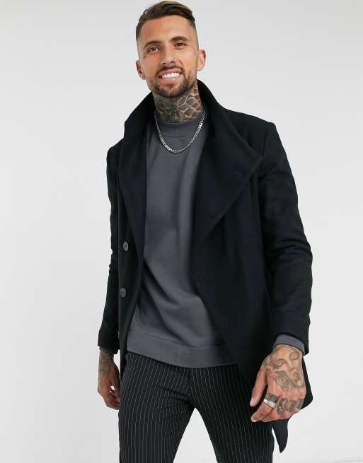 Religion – Asymmetrischer Mantel mit Stehkragen in Schwarz