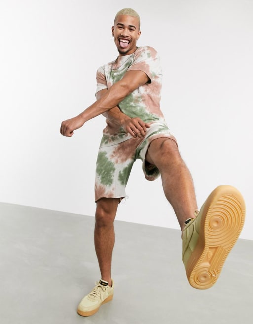 Religion – T-Shirt und Shorts in gebrochenem Weiß mit Batikmuster und Logoprint im Set