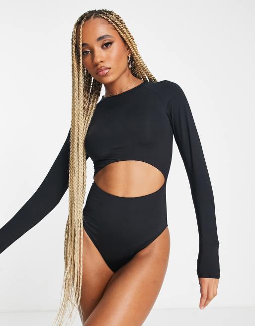 Rhythm – Langärmliger Badeanzug in Schwarz mit Zierausschnitt