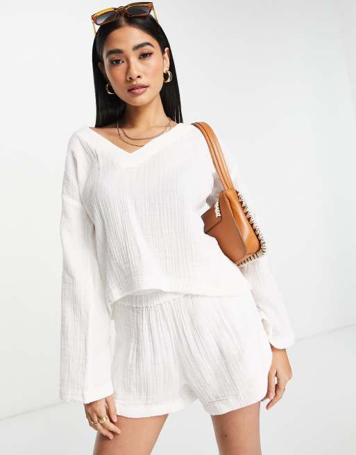 Rip Curl – Oversize-Surf-Oberteil in Weiß mit kurzem Schnitt, Kombiteil