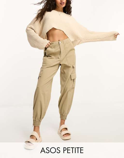 River Island Petite – Cargohose in Beige mit Reißverschluss am Bündchen