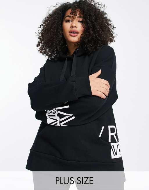 River Island Plus – Active – Sport-Kapuzenpullover in Schwarz mit Logo