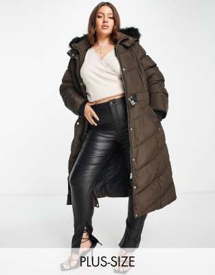 River Island Plus – Figurbetonter, wattierter Mantel in Braun